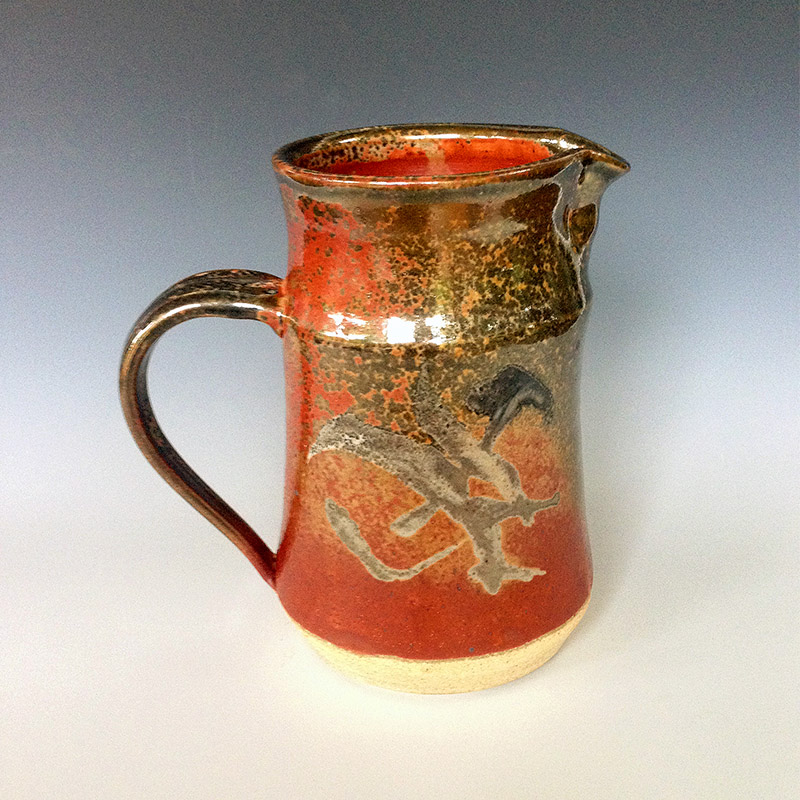 Hand thrown and painted, soda fired to cone 7, 12"H x 6.5"L x 6.5"W.